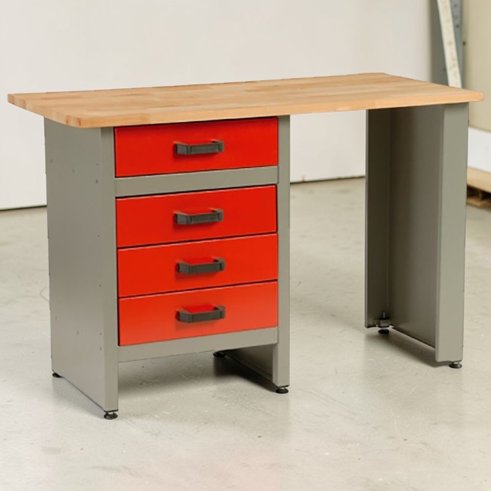 Ez a munkatársad egyszerre erős és praktikus: robusztus acéltestének köszönhetően nem inog meg nagy terhelés alatt sem, a négy különálló fiók pedig átlátható rendszerezést tesz lehetővé. Az előre bepréselt anyák leegyszerűsítik az összeszerelést, így időt és energiát takarítasz meg. Kompakt külső mérete ellenére meglepően tágas munkafelületet kínál, emellett modern piros–szürke színösszeállítása feldobja a műhely hangulatát.