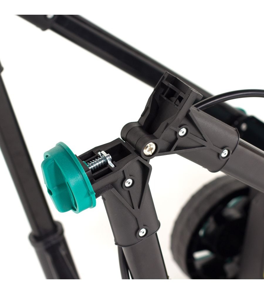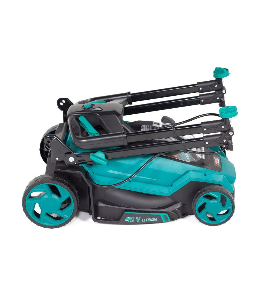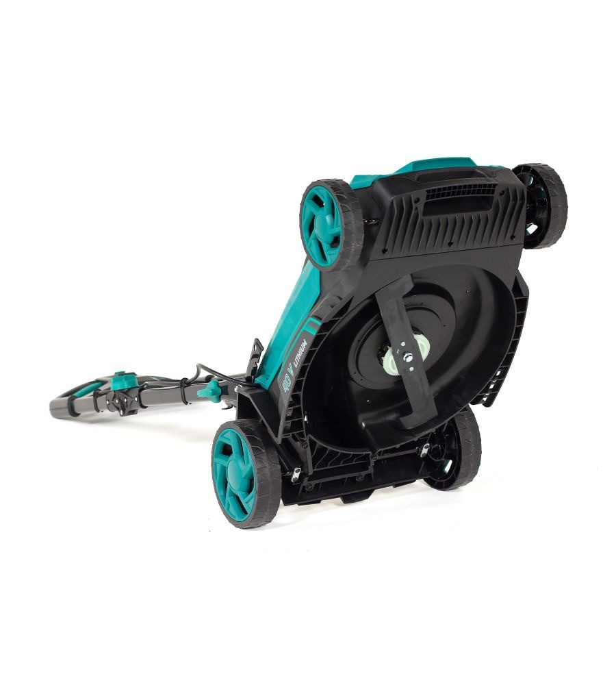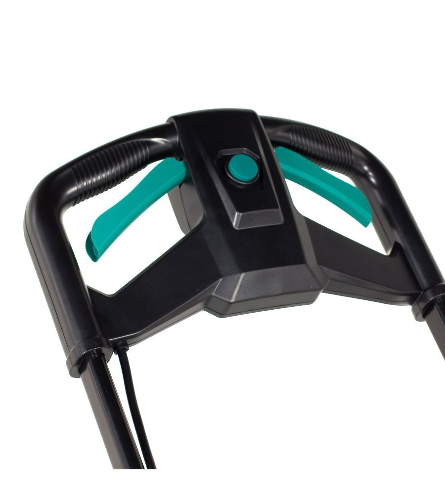A fűnyíró nagy előnye a kompatibilitás az összecsukható fogantyúnak köszönhetően. A huzat felső részén egy praktikusfogantyú található, amely megkönnyíti és gyorsabban emeli vagy hordozza.