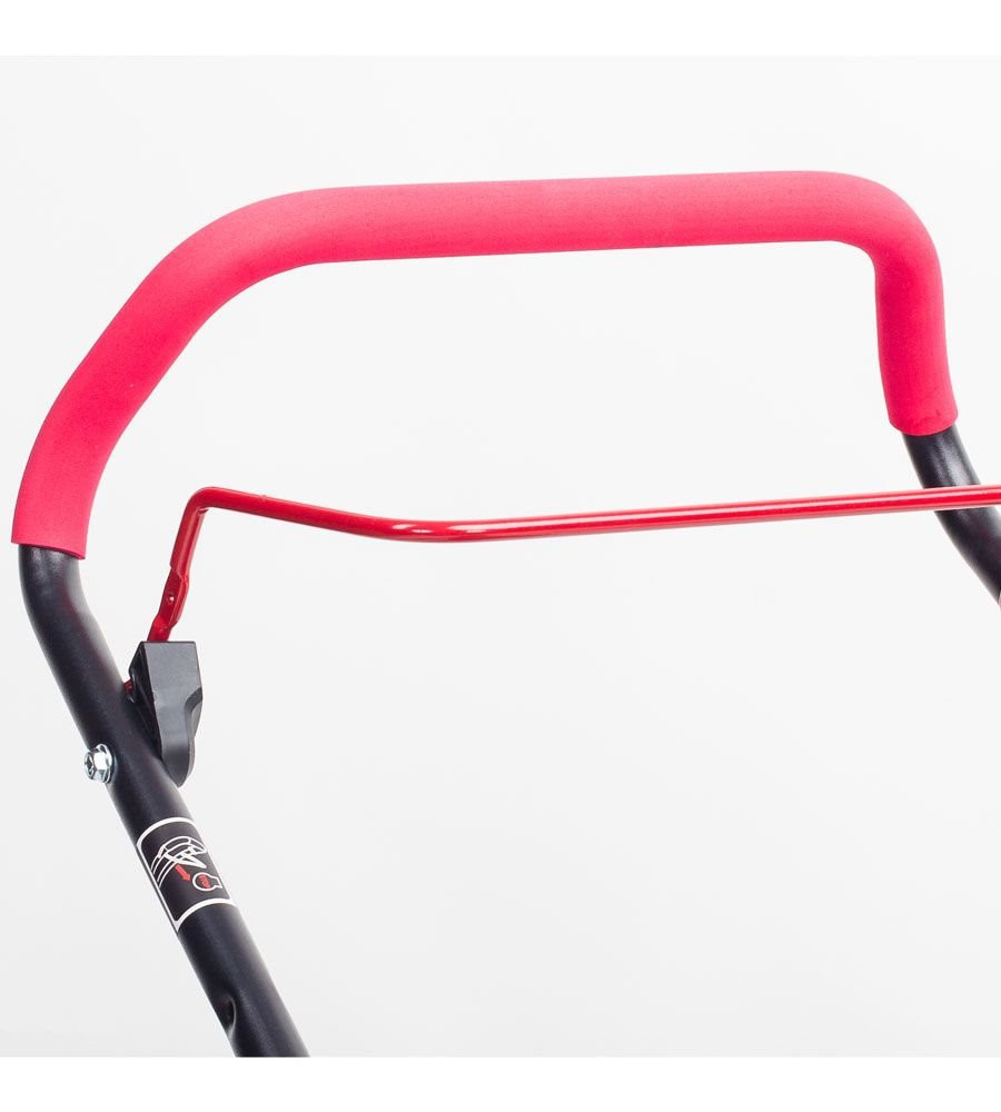 Az ergonomikusan kialakított markolat igény szerint állítható, így biztosítva a kényelmes munkavégzést. A gördülési ellenállást csökkentő golyóscsapágyazott nagyméretű kerekeknek köszönhetően a fűnyíró könnyen manőverezhető lesz.