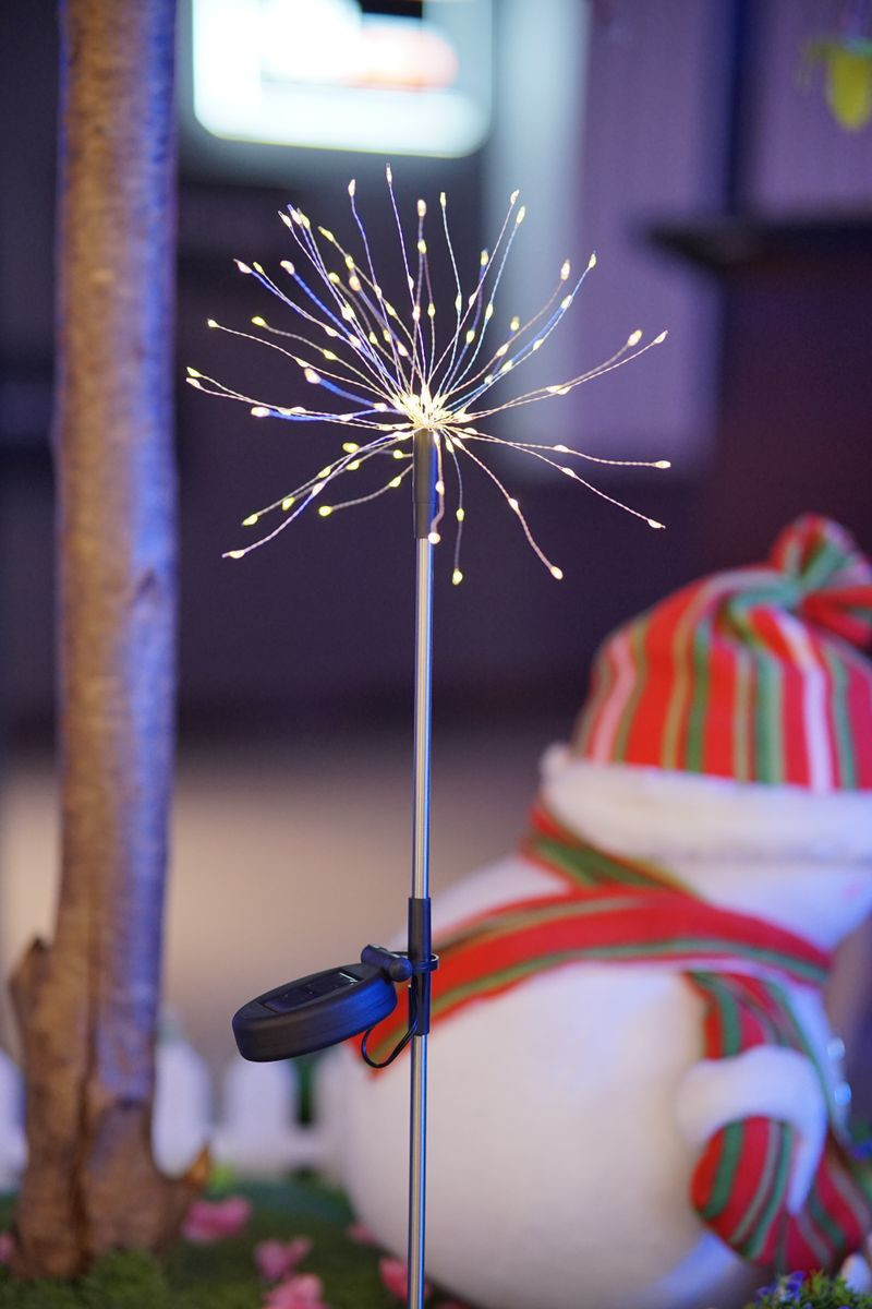 Varázsolj tűzijáték-szerű ragyogást a kertedbe a Strend Pro Garden Solita napelemes lámpával! A 81 cm magas, leszúrható szár végén 90 apró LED bontakozik szét csillagszóró alakban, meleg fehér fénnyel emelve ki az ösvényeket, virágágyásokat vagy a teraszt. A rozsdamentes acél és strapabíró műanyag ház ellenáll az időjárásnak, míg a diszkrét napelem napközben feltölti a beépített akkumulátort, így estére automatikusan felkapcsol a kábelmentes, energiatakarékos fényforrás.