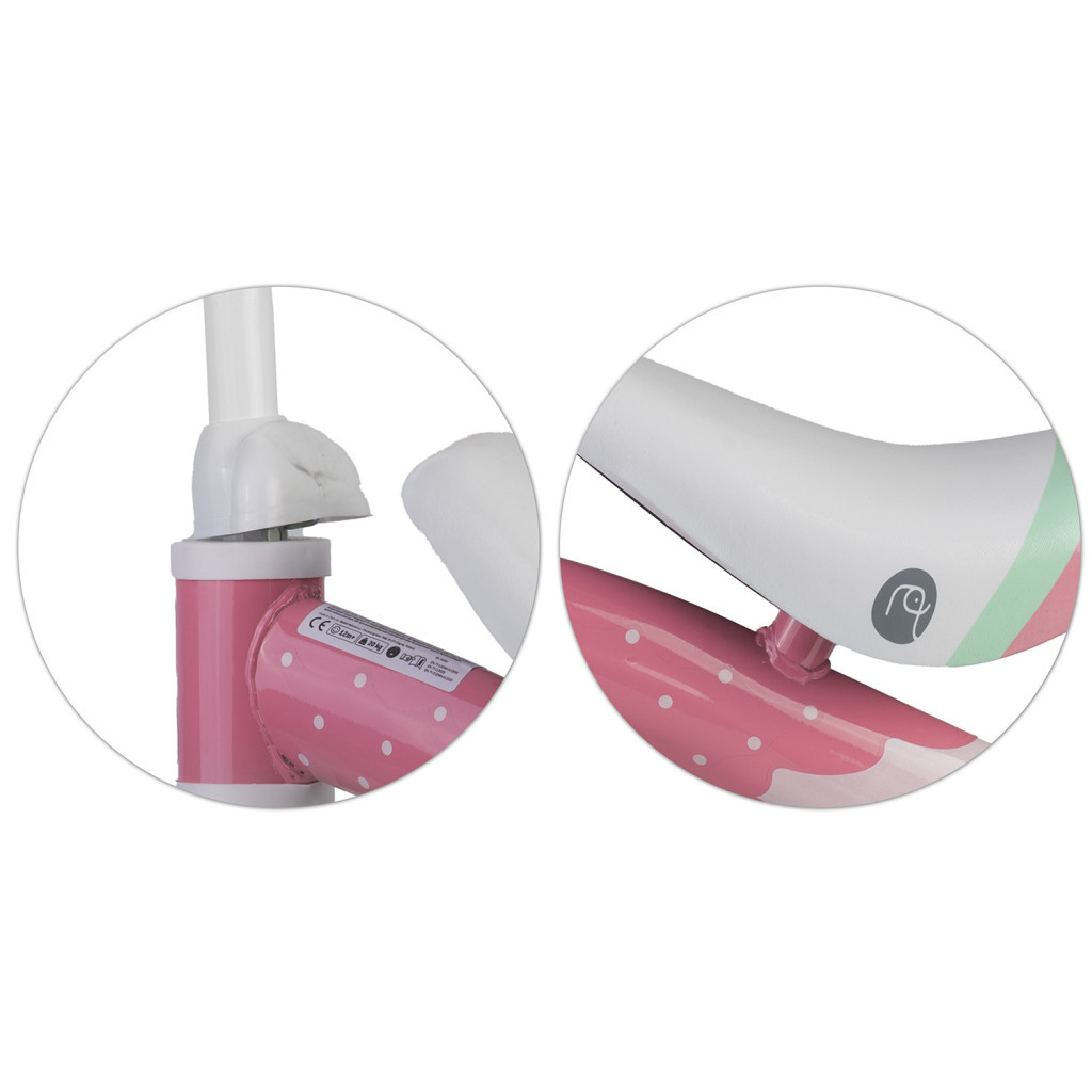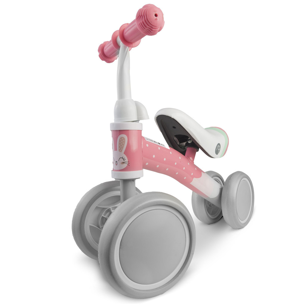 Száguldj játékosan a Nukido NK-600 futóbiciklivel! A négy stabil keréknek köszönhetően a legkisebbek is magabiztosan fedezhetik fel a mozgás örömét. A mindössze 1,72 kg-os, ultrakönnyű vázat a kicsik könnyedén tologatják, így gyorsan fejlődik az egyensúlyérzékük és a mozgáskoordinációjuk. A rózsaszín, pöttyös, nyuszis dizájn elbűvöli a gyerekeket, a lekerekített élek pedig biztonságos játékot garantálnak. A puha markolatok csúszásmentesen illeszkednek a kis kezekbe, a csendes, zárt kerekek pedig kímélik a padlót.
