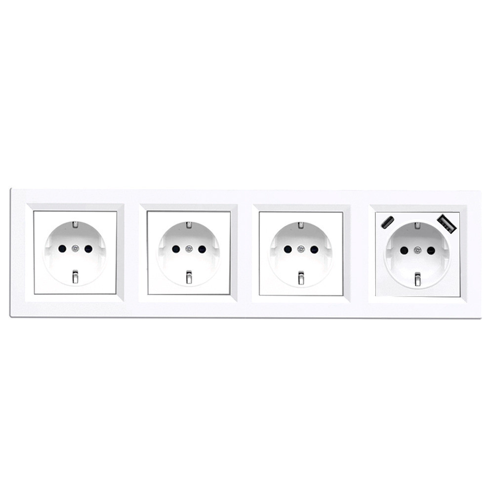 • Típus: Hármas földelt csatlakozóaljzat (2P+F, F típus) + 1 × USB-A + 1 × USB-C, összesen max. 2A kimeneti áramerősség