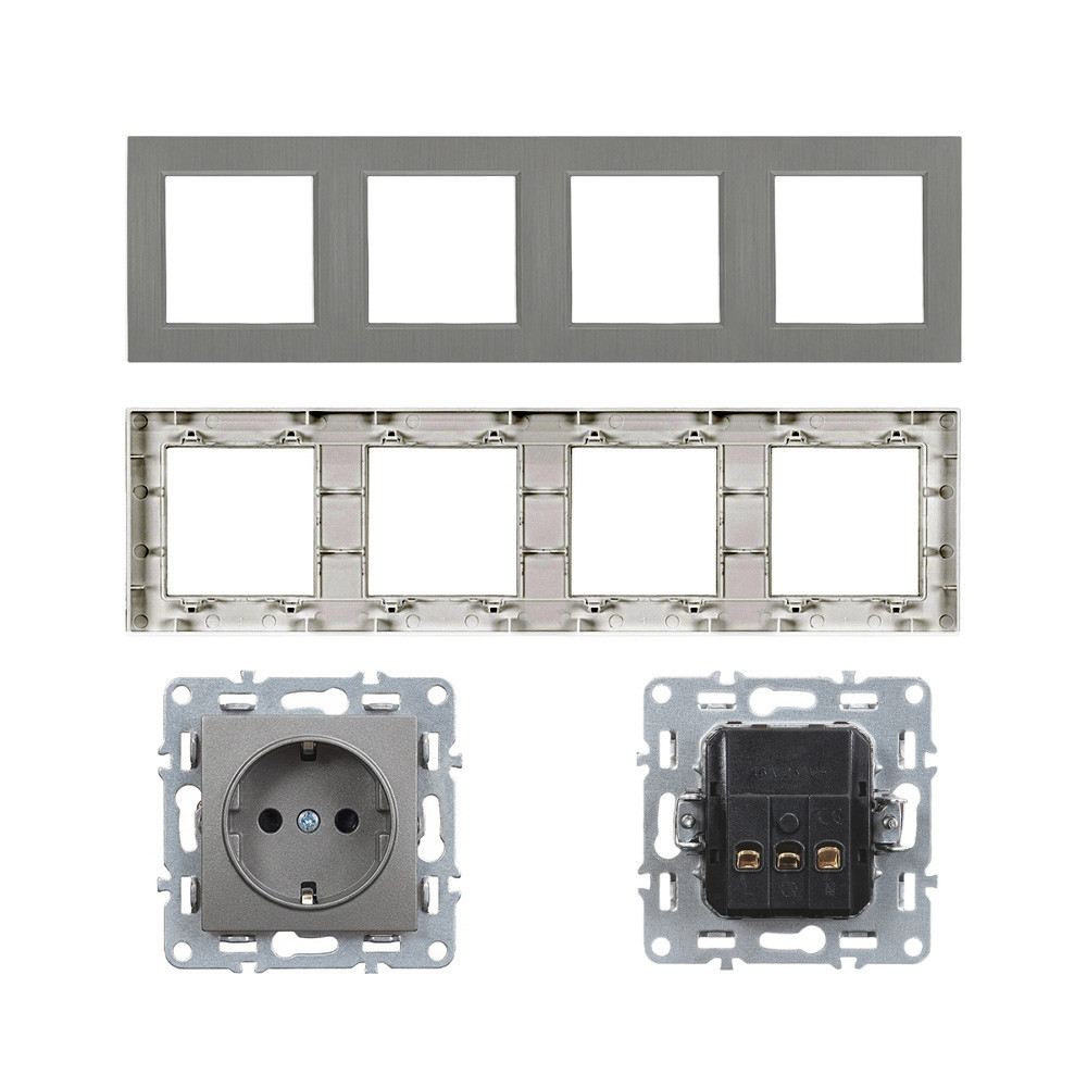 Nova IV négy földelt csatlakozóaljzat dugalj 16A 250V szürke kerettel