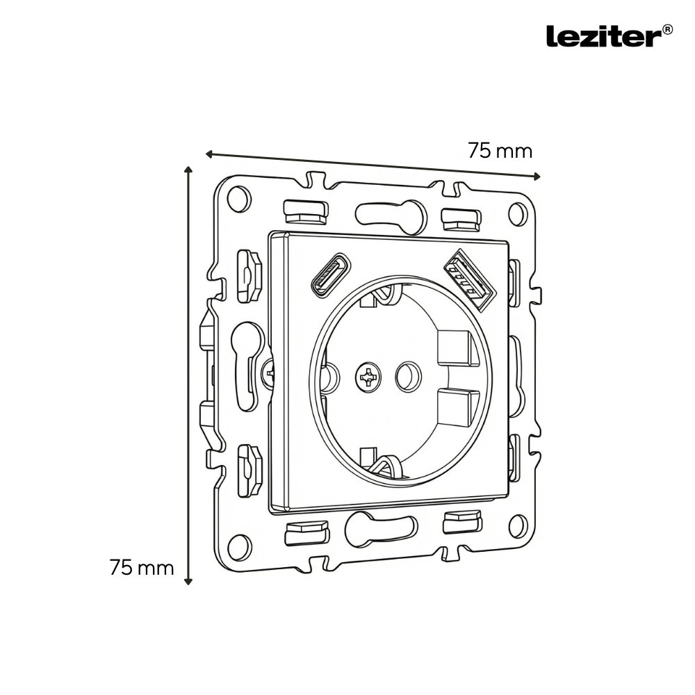 A Nova földelt csatlakozóaljzat USB csatlakozóval fehér kerettel ideális választás olyan helyiségekbe, ahol egyszerre szükséges hagyományos 230 V-os elektromos csatlakozás és gyors, adapter nélküli USB töltés. Az USB-A és USB-C portok segítségével közvetlenül csatlakoztatható mobiltelefon, fülhallgató, okosóra és más kisebb fogyasztású eszköz – külön hálózati adapter nélkül.