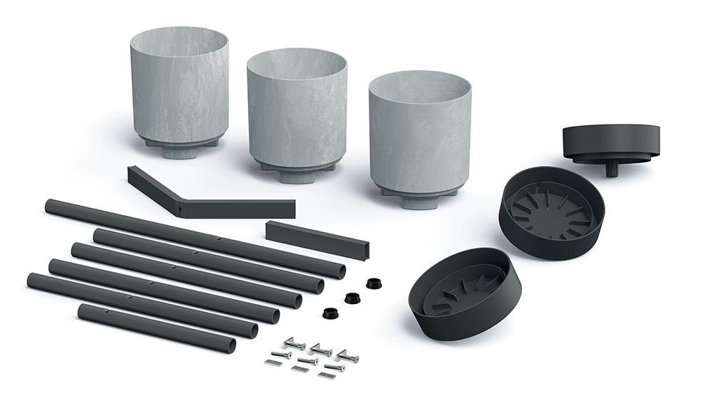 Az állvány modern kialakítású. A szürke virágcserepeket a betonra emlékeztető motívum díszíti. Ültesse beléjük kedvenc virágait, és emelje ki szépségüket. Nem kell a polcon vagy a szekrényben helyet keresned nekik.