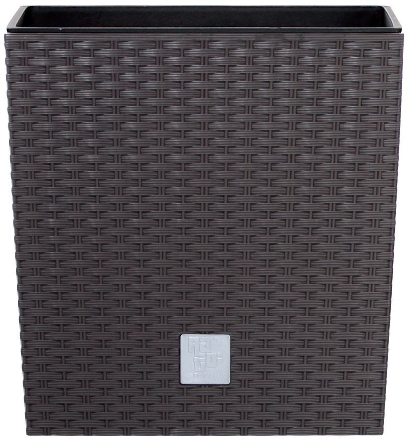 Az okosan kialakított, kivehető betét gyorsabb ültetést tesz lehetővé, miközben csökkenti a felhasznált virágföld mennyiségét, így pénzt és súlyt spórolsz. A masszív falak stabil tartást adnak a gyökereknek, a mély belső tér pedig elegendő vízmegtartást biztosít a forró nyári napokon is. A barna, rattan fonatot idéző külső dekoratív és karcálló, UV-álló anyagának köszönhetően nem fakul ki a napsütésben, fagyálló tulajdonsága miatt pedig egész évben használhatod kint vagy bent.
