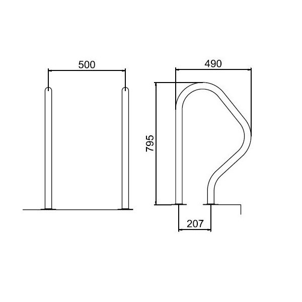 Medence korlát 795 x 490 mm AISI316L (1 pár)
