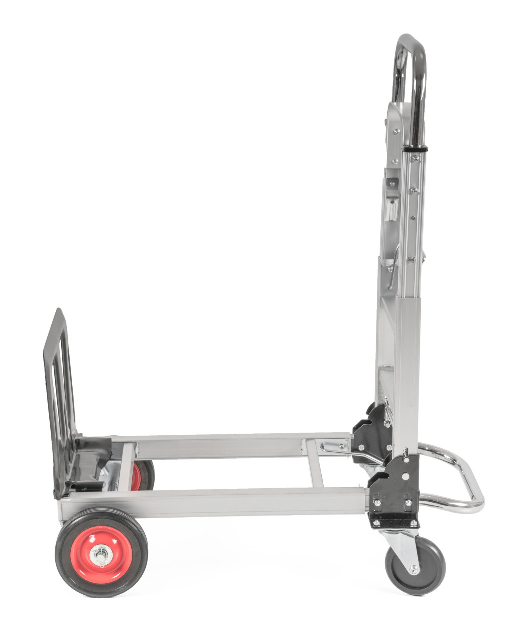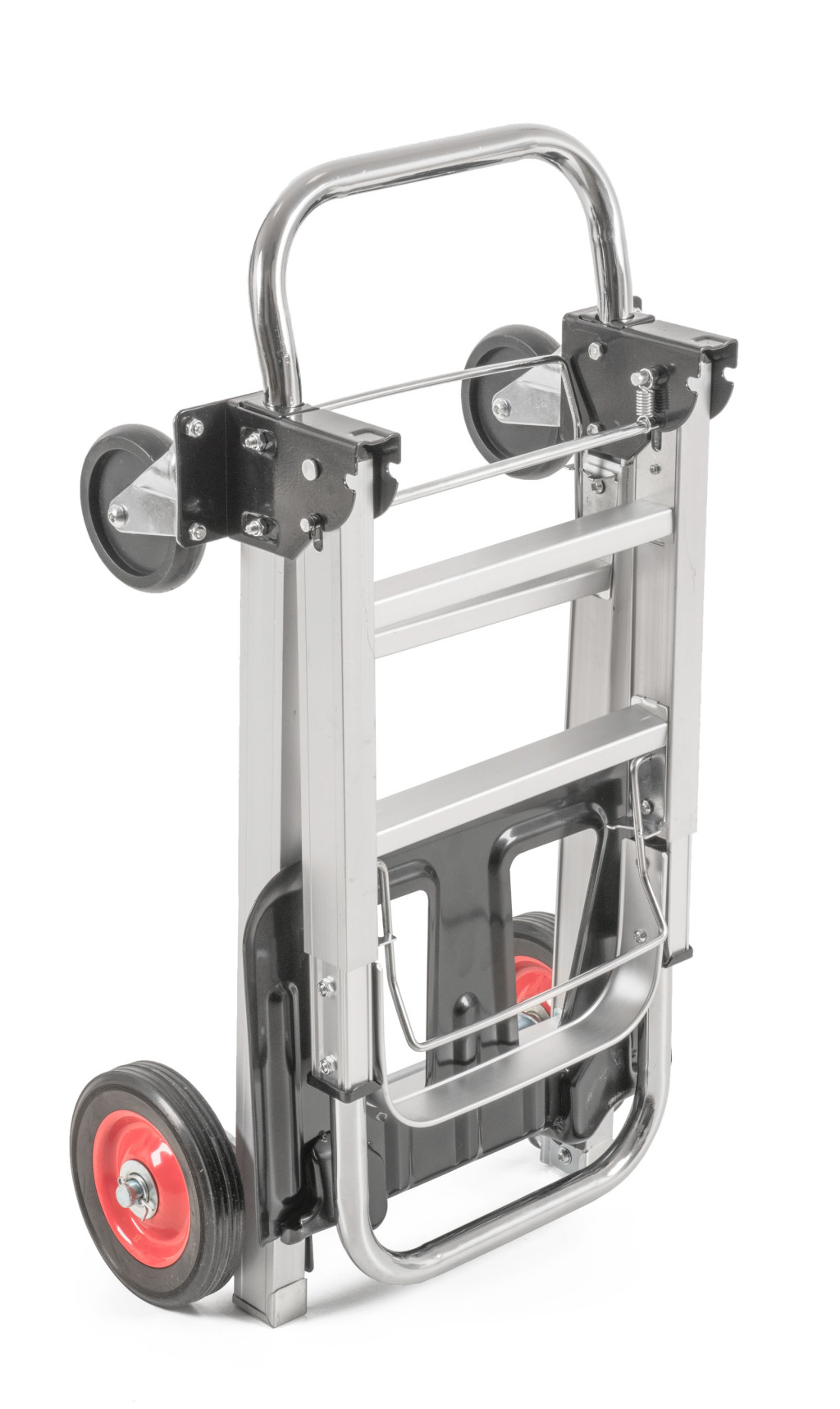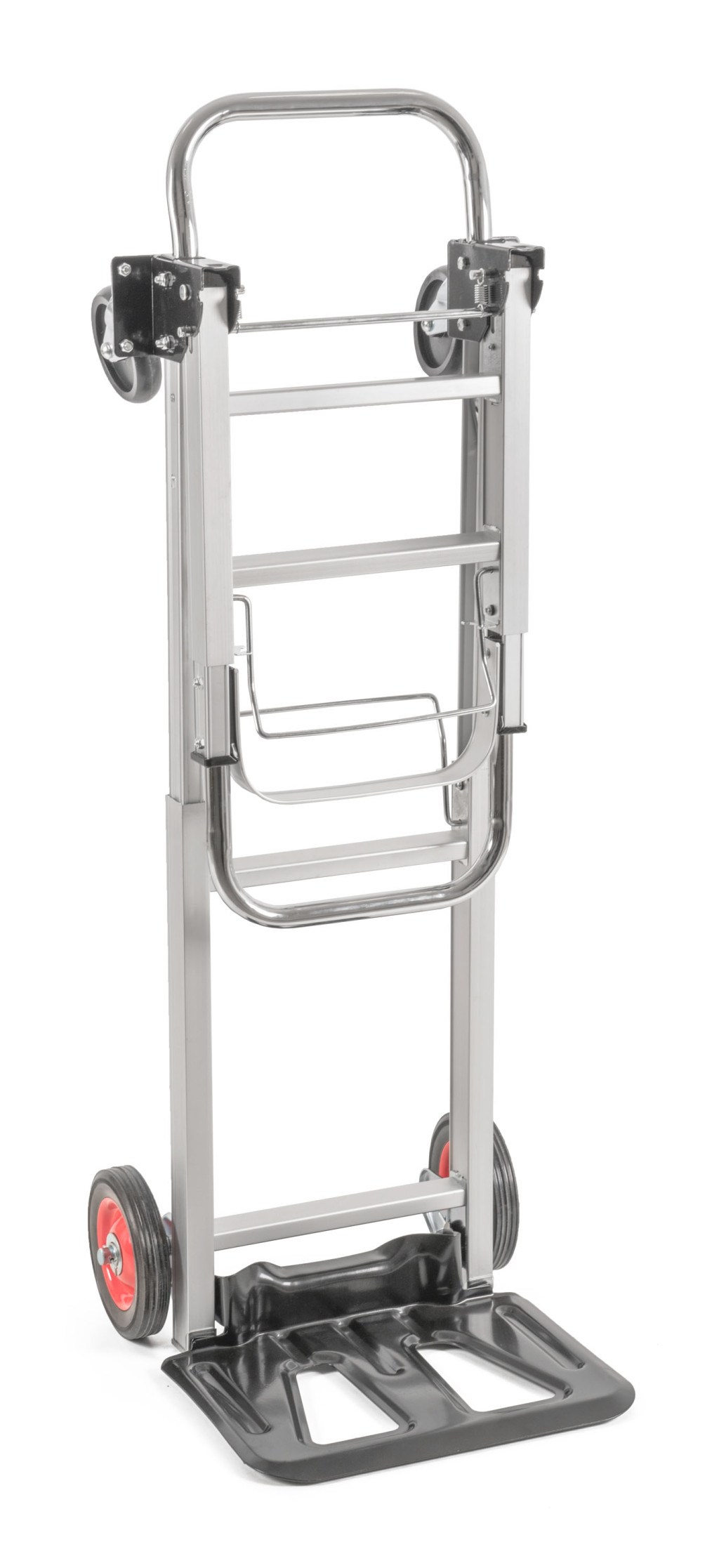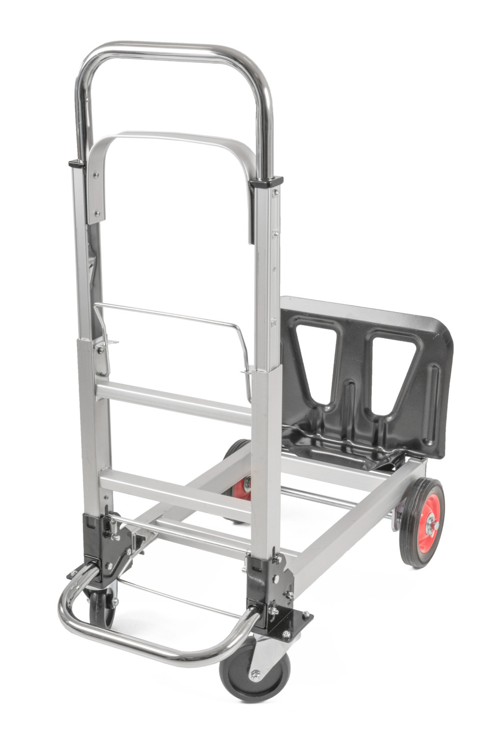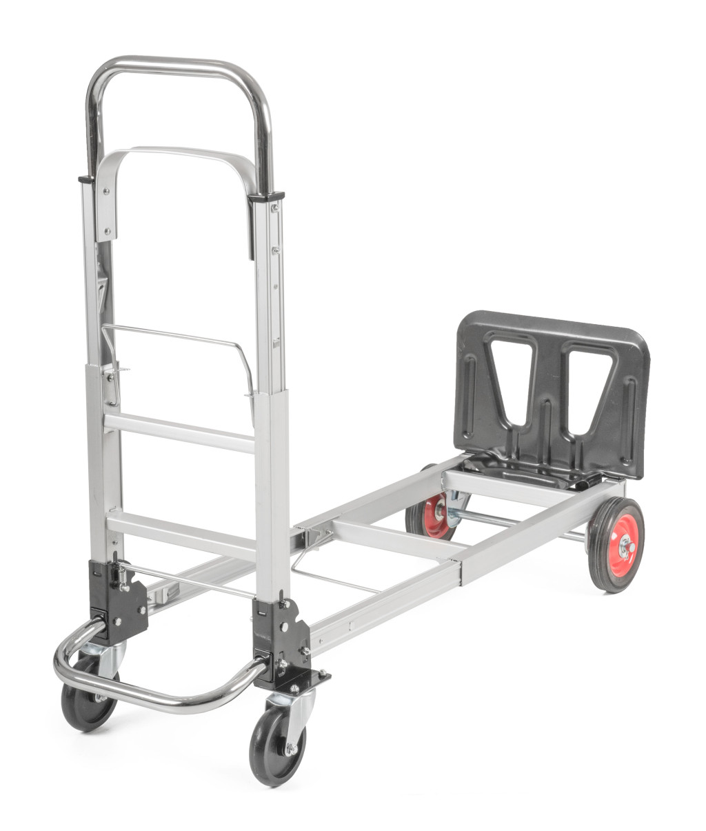 Multifunkcionális 2 az 1-ben gurulós kocsi - gurulós és szállító kocsi, nehéz terhek kezeléséhez, alumínium konstrukció, teherbírás 150 kg, 15 cm átmérőjű kerekek.