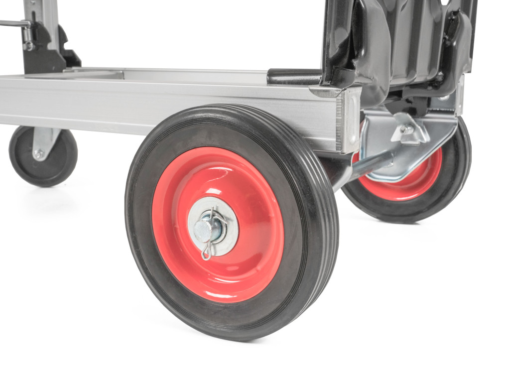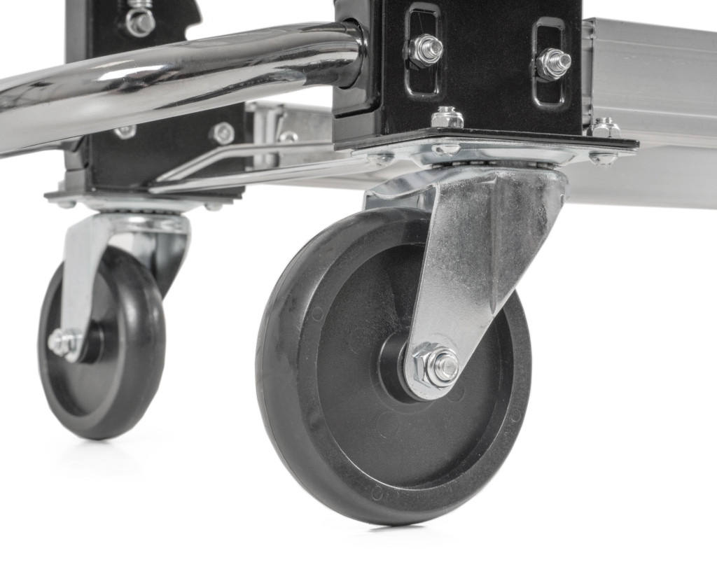A könnyű, mégis erős alumínium váz strapabíró és hosszú élettartamot biztosít. A 15 cm átmérőjű tömör kerekek különféle felületeken is jól gördülnek – akár sima padlón, akár enyhén egyenetlen terepen.