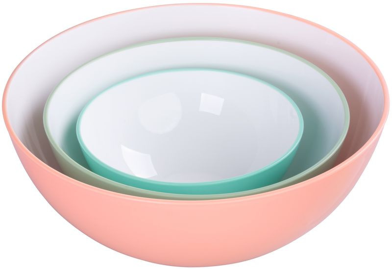 Frissítsd fel a konyhádat a MagicHome pasztell salátástál készlettel! A három különböző méretű, 0,6 l, 1,5 l és 3 l űrtartalmú tál ideális előételek, gyümölcsök, tészták vagy akár egy nagy családi saláta tálalásához. A külső barack, menta és türkiz árnyalatok üdítő színfoltot visznek az asztalra, miközben a fényes fehér belső felület még étvágygerjesztőbbé teszi a fogásokat. Strapabíró anyaga mikrohullámú sütőben is használható, mosogatógépben pedig gyerekjáték a tisztítása.