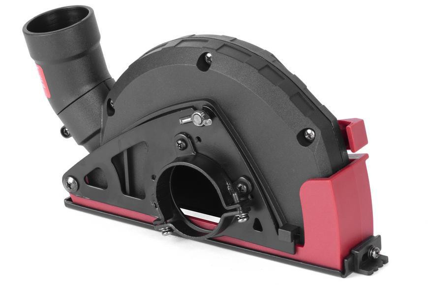 Az optimalizált légáram és a zárt burkolat minimálisra csökkenti a munkaterület porterhelését, így tisztább levegőt, jobb láthatóságot és kevesebb utólagos takarítást biztosít. A cserélhető adaptergyűrűk révén többféle porszívócső illeszthető hozzá, a gyorsrögzítő bilincs pedig szerszám nélkül felhelyezhető. Stabil tartást ad, növeli a csiszolókorong élettartamát, és óvja a sarokcsiszoló motorját a por okozta meghibásodásoktól.