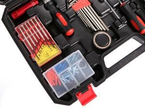Szeretne otthon egy minőségi szerszámkészletet? Szerezzen be egy praktikus SIXTOL HOME 110 készletet, amelyet otthon és a műhelyben használhat. Egy stílusos műanyag tokban találsz 110 darabot, beleértve az elektromos szerszámokat, foglalatokat és fejeket vagy összekötő anyagokat. A fogantyús bőrönd könnyen hordozható, így a készlet ideális utazáshoz. Modern piros és fekete kivitelben kapható.