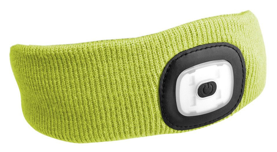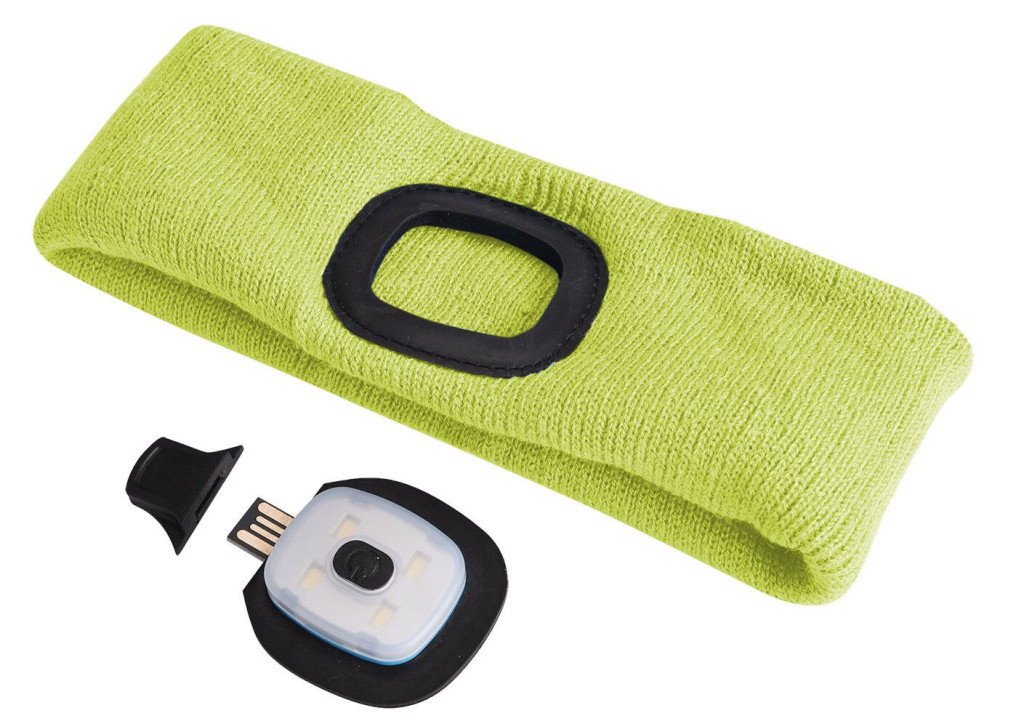 Fejpánt LED fejlámpával, beépített 4x45 lm-es LED-es fény, 3 világítási mód - 50%, 75% és 100%, az akkumulátor élettartama akár 4 óra, a fejlámpa levehető és a fejpánt mosható, egyszerű újratöltés USB-n keresztül, fluoreszkáló sárga.
