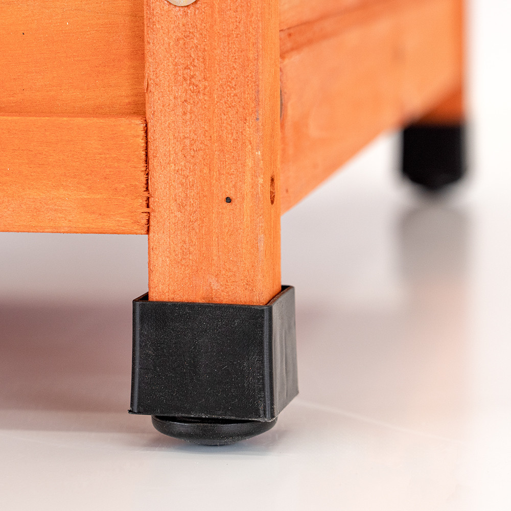 Az állítható műanyag sapkák a kutyaház lábain biztosítják a stabil tartást és optimális védelmet a tartós nedvességgel szemben. A talajtól való távolság egyedileg állítható, így a szellőző hatású levegőáramlás biztosított, ami kiválóan védi kedvencedet a talaj hidegétől és nyirkosságától.