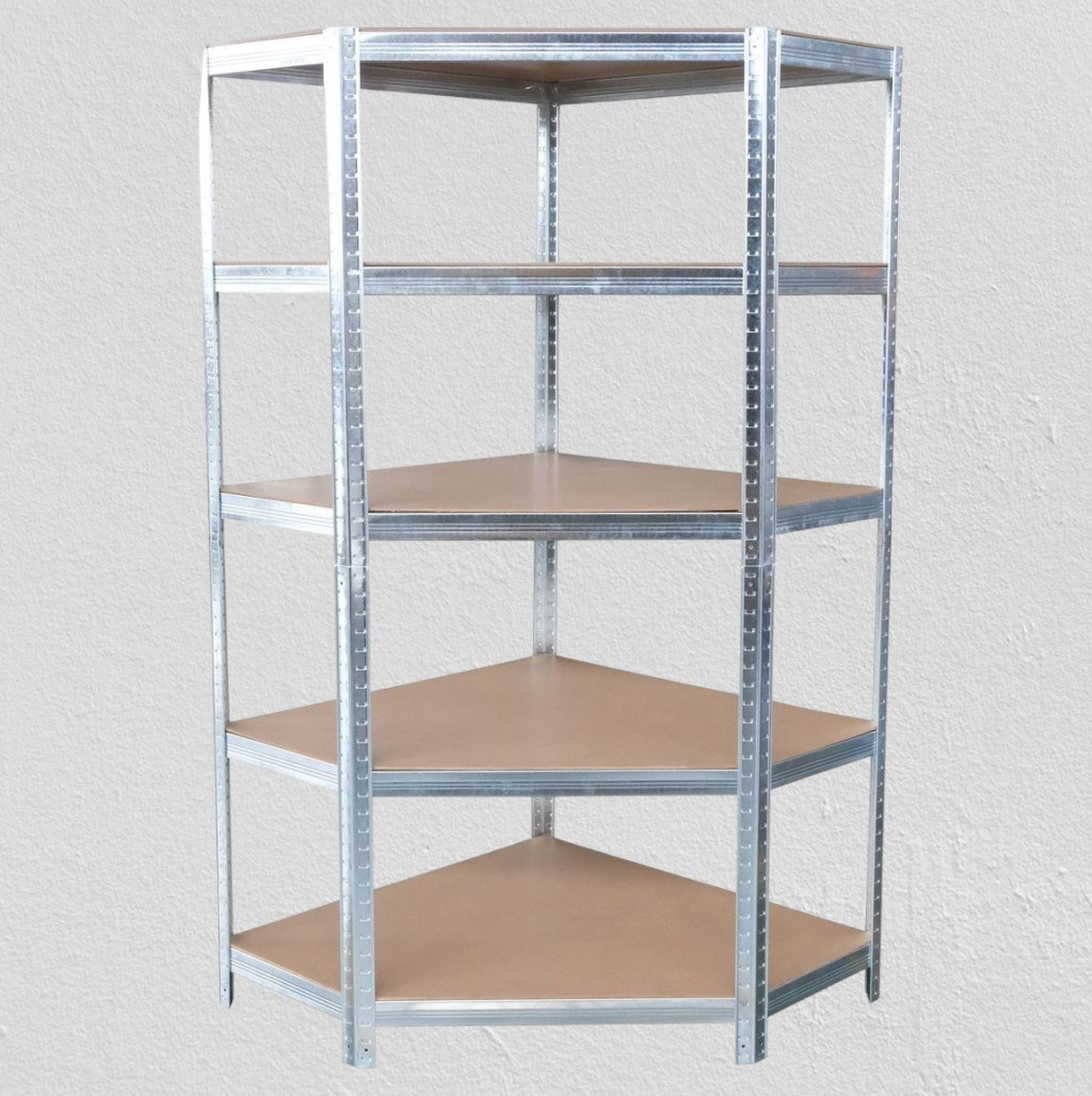 Tökéletes választás, ha helytakarékos, mégis erős tárolási megoldást keresel műhelybe, garázsba vagy raktárba. A sarok kialakítás ideálisan kihasználja a rendelkezésre álló teret, miközben stabil és nagy teherbírású. A csavarmentes szerkezetnek köszönhetően az összeszerelés gyors és egyszerű. A masszív fémváz és az MDF polclapok együttese garantálja a tartósságot, polconként 150 kg teherbírással, így összesen akár 750 kg súlyt is elbír.