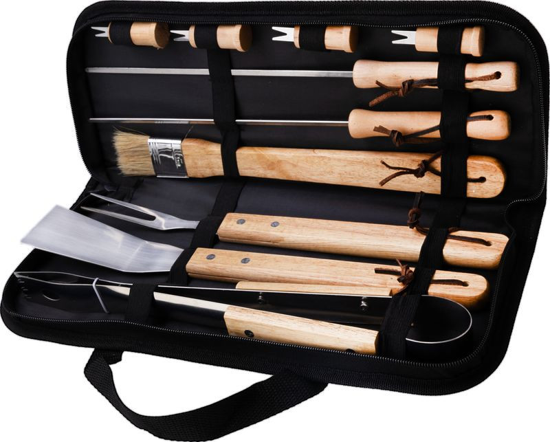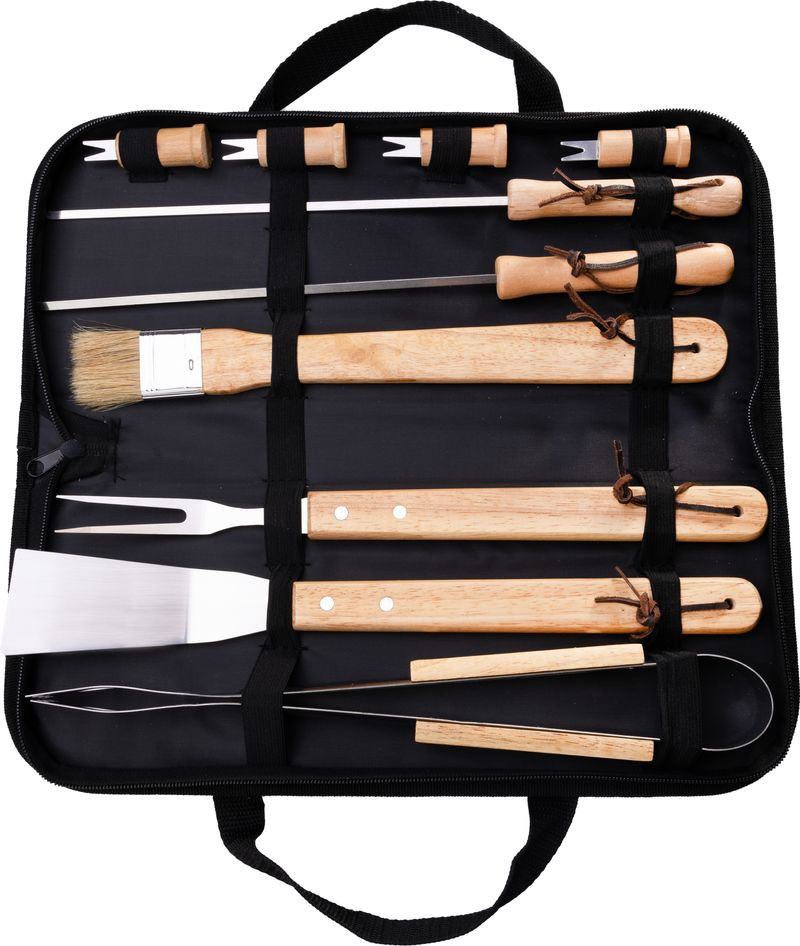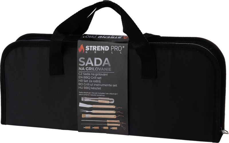A Strend Pro Grill észlet tizenegy eszközből áll, praktikus hordtáskába csomagolva.