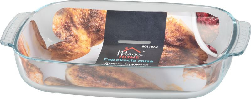 Fedezd fel a MagicHome 3900 ml-es, téglalap alakú üveg sütőtálat, és varázsold otthonodba a frissen sült fogások illatát! A 38 × 25,4 × 6,3 cm-es tál vastag, hőálló üvegből készült, így bátran tolhatod forró sütőbe vagy mikrohullámúba, de a hűtőhideget is gond nélkül bírja. A kristálytiszta falaknak köszönhetően egy pillantással ellenőrizheted a piruló finomságokat, a praktikus fülek pedig biztonságos, csúszásmentes kiemelést tesznek lehetővé az asztalhoz.