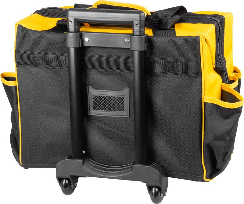 A Strend Pro gurulós szerszámtáska ideális társ, ha a műhelyből a helyszínre kell vinned a szerszámaidat. Strapabíró textilből készült, masszív alapra építve, így akár 20 kg-nyi szerszámot is biztonságosan elbír. 44 × 24 × 42 cm-es belsejében kényelmesen elférnek a nagyobb gépek, míg a sokoldalú oldalzsebekben rendszerezheted a csavarhúzókat, fogókat és kiegészítőket. A cipzáras fedél óvja a tartalmat a portól, az időjárástól, a kerekek és a kihúzható teleszkópos fogantyú pedig gördülékennyé teszi a szállítást.