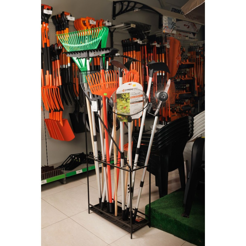 Teremts könnyedén rendezett, átlátható munkateret a Strend Pro szerszámtartó állvánnyal! A 60x24x120 cm-es, masszív fekete fémszerkezet két tágas polcot és döntött tartókeretet kínál, így a hosszú nyelű lapátok, gereblyék és seprűk nem borulnak fel, a kisebb eszközök pedig egy mozdulattal elérhetők. A mindössze 6,04 kg-os, mégis robusztus állvány stabilan áll a garázsban, pincében vagy kerti fészerben, és pillanatok alatt rendet varázsol a szerszámkavalkádból.