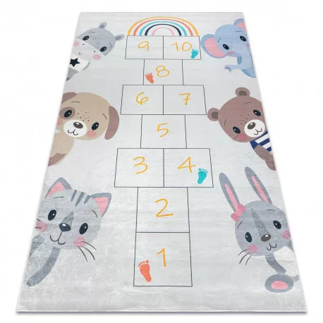 TOP! Kab. BAMBINO 43092 mosható szőnyeg Állatok, komló gyerekeknek csúszásgátló - rózsaszín / sárga 160x220 cm