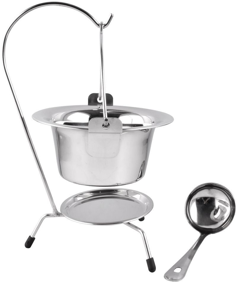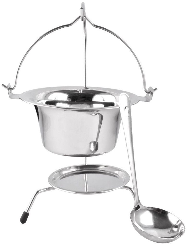 • Teljes szettben érkezik: tál, állvány és merőkanál – csak az étel hiányzik