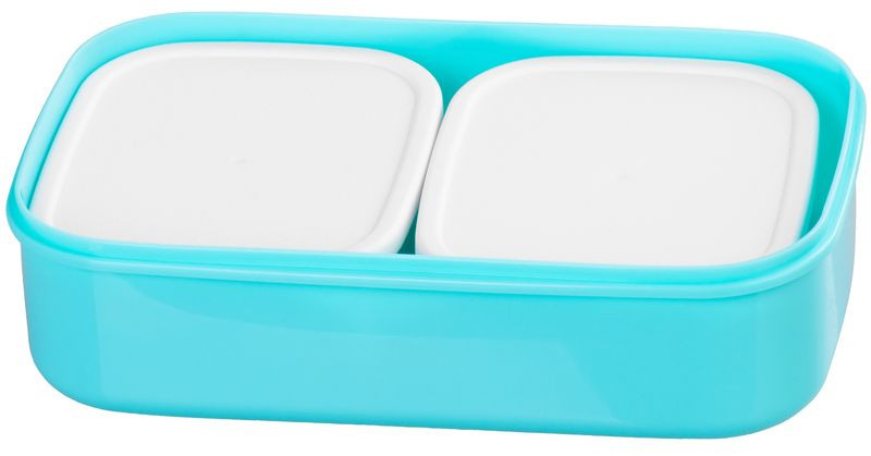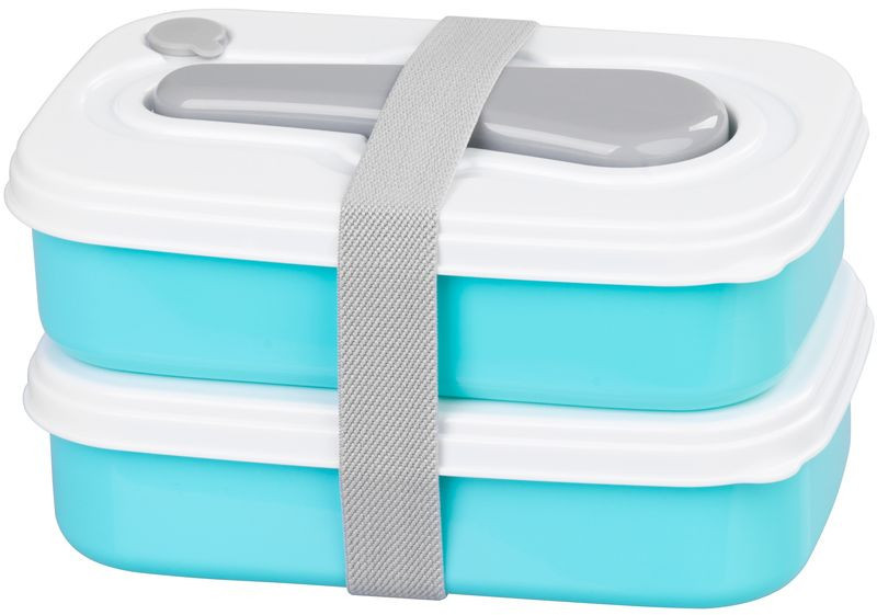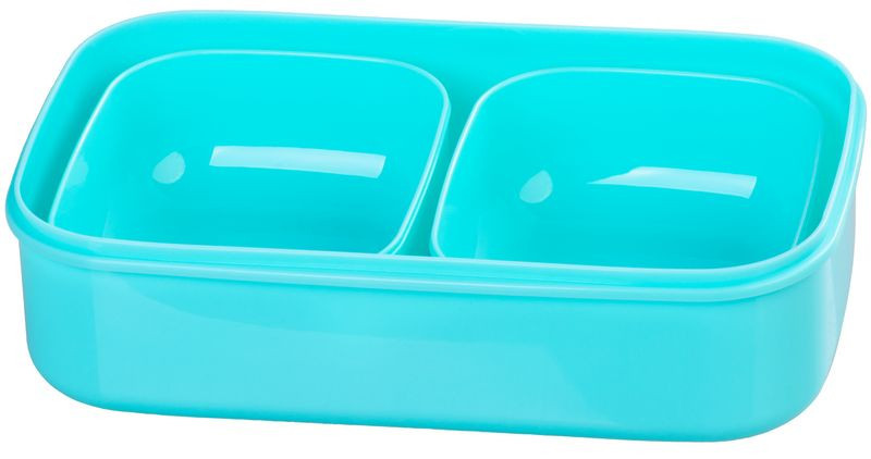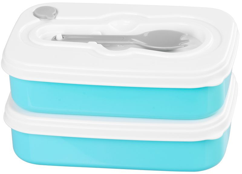 Tárolódoboz szett, MagicHome, türkiz, 2 db, 2000 ml (2 × 1000 ml), 208 × 135 × 124 mm, téglalap alakú, 2 részes, villával/kanállal, műanyag, mosogatógépben mosható, hűtő- és fagyasztóálló