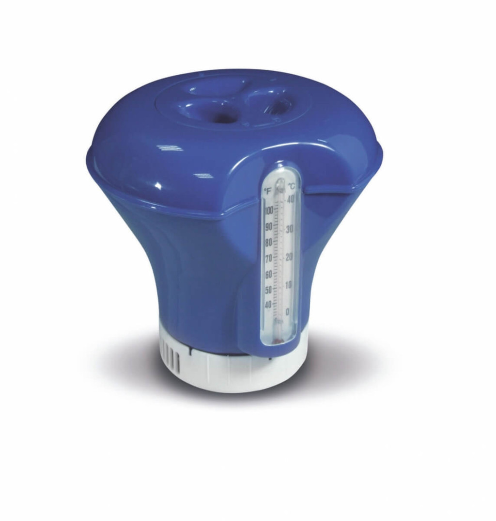 Ez az úszó adagoló medencevíz tisztítására szolgáló vegyszerek adagolását biztosító úszó tisztítószer adagoló. Lehetővé teszi, hogy a klór fokozatosan oldódjon fel a tablettákból, és így a víz fertőtlenítése egyenletes és folyamatos legyen. Állítható nyílása lehetővé teszi a klór fokozatos oldódását a tablettából. Mindemellett a bója oldalán található egy hőmérő is, mellyel könnyen elérheted a számodra tökéletes vízhőmérsékletet a forró nyári napokon.