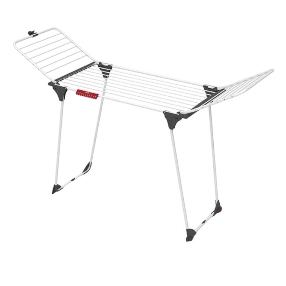 A Vileda King a praktikum és a tartósság tökéletes kombinációja. XXL vastagságú huzalainak köszönhetően a ruhákon nem maradnak huzalnyomok, így kevesebb időt kell vasalással töltened. Stabil, dőlésálló kialakítása biztonságos használatot garantál, miközben a tágas szárítófelület lehetővé teszi nagyobb textíliák, például ágyneműk szárítását is. Egyszerűen összecsukható, így kis helyen is elfér.