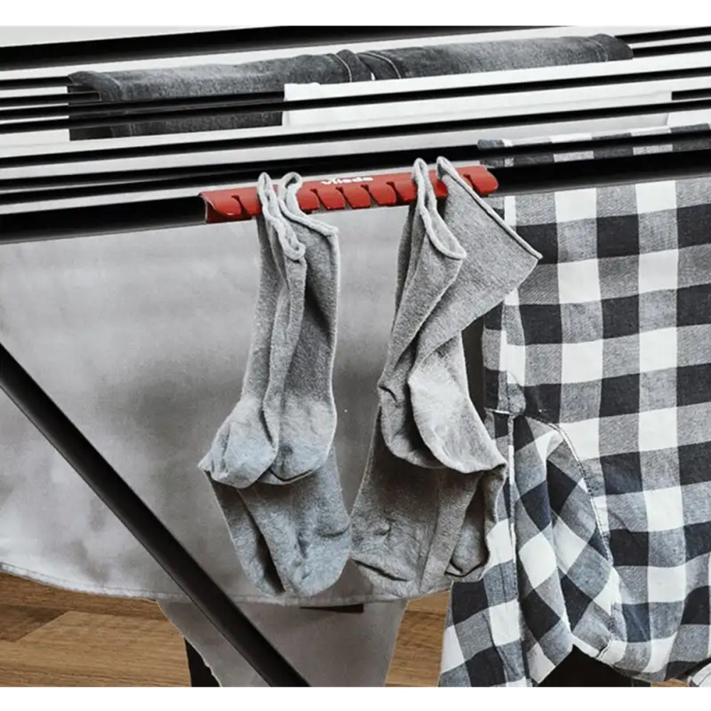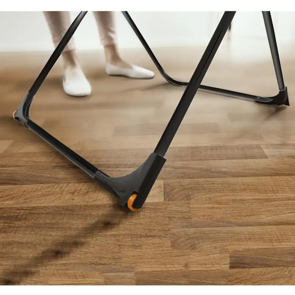 A Vileda Universal Ultimate ergonomikus kialakítású, rozsdamentes acélváza rendkívül tartós, és a kihajtható oldalsó szárnyak extra szárítási felületet kínálnak, ha több ruhát kell egyszerre teregetned. A keskeny, könnyen összecsukható szerkezet ideális kisebb lakásokba is, hiszen egyszerűen elfér akár egy szekrény mögött vagy a mosógép mellett.
