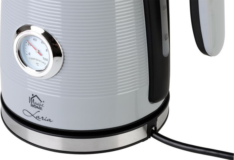 Tapasztald meg a gyors, elegáns és biztonságos vízforralást a MagicHome Laria gyorsforralóval! A 1850–2200 W teljesítménynek köszönhetően akár percek alatt felforralja a vizet, a beépített analóg hőmérő pedig folyamatosan mutatja a hőfokot, így pontosan beállíthatod kedvenc teád vagy kávéd ideális hőmérsékletét. A 1,7 literes kapacitás bőven elegendő nagyobb családnak, irodai konyhasaroknak vagy vendégfogadáshoz. Modern, bordázott fehér burkolata rozsdamentes acél kiöntőcsőrrel és fedéllel párosul, ami nemcsak látványos, hanem tartós is. A rejtett fűtőszálat 360°-os központi talp rejti, így a kanna bármilyen pozícióból könnyedén visszahelyezhető.