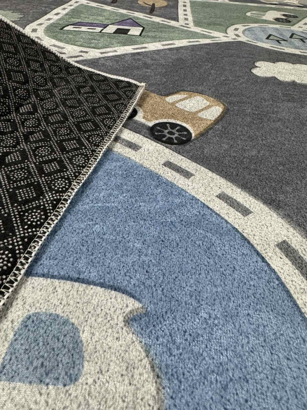 Den. Mile 5232-1 kék-szürke 80 x 150cm autópályás gyerekszőnyeg