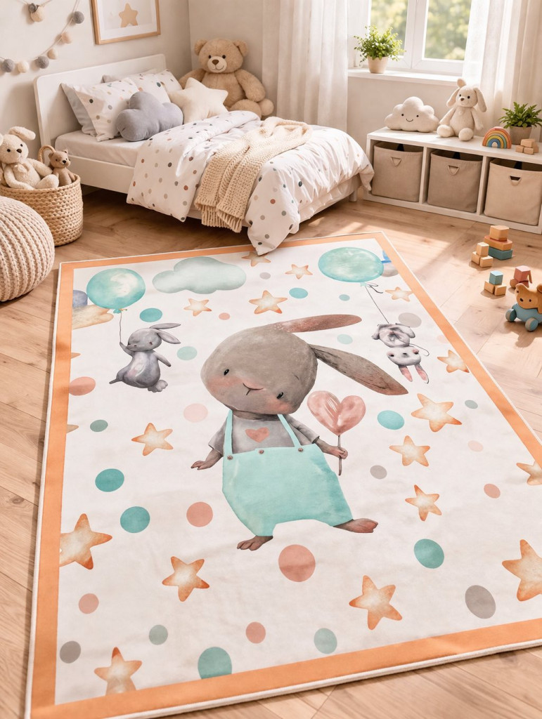 Den. Mile 5332-1 fehér 120 x 180cm nyuszis gyerekszőnyeg