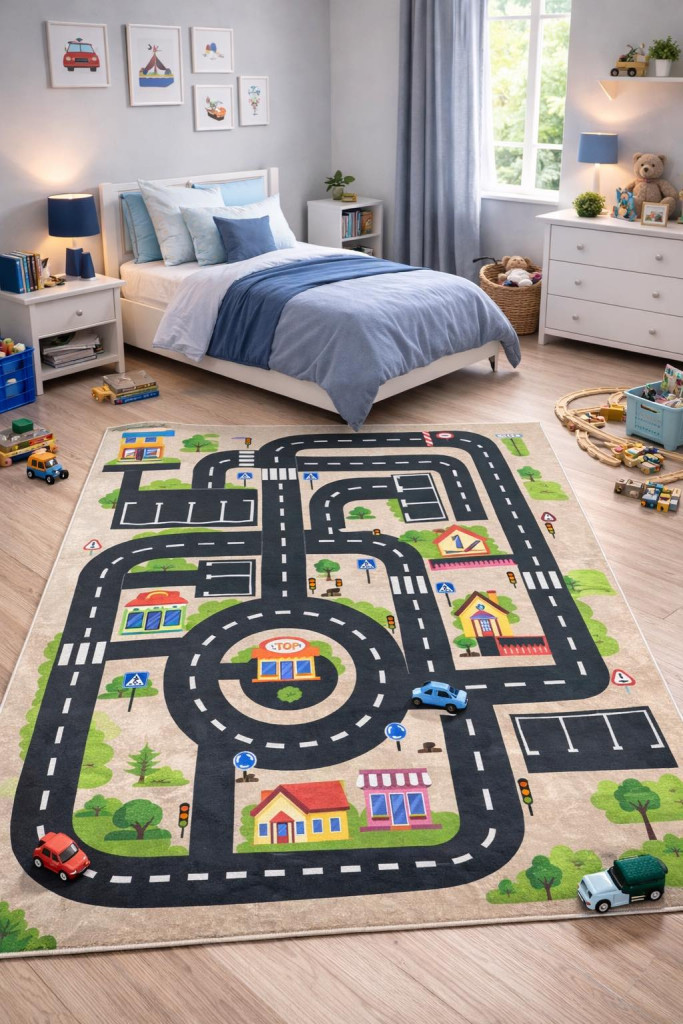 Den. Mile 5375-1 bézs 120 x 180cm autópályás gyerekszőnyeg