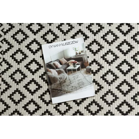 Kab. Fonott sizal flat szőnyeg 49361960 Rombuszok krém / fekete 200x290 cm
