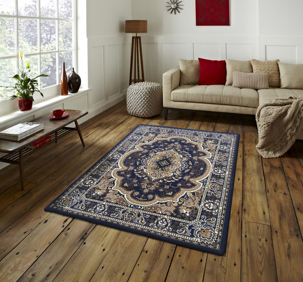 BCF Alfa klasszikus mintázatú szőnyeg kék színárnyalatban, 180 x 250cm méretben. A BCF alapanyagból készült darab puha tapintású, mégis strapabíró, ideális választás a nappaliba vagy étkezőbe. 9mm vastagságával kellemes járófelületet biztosít. A szőnyeg rendszeres porszívózással és időnkénti nedves tisztítással sokáig megőrzi eredeti szépségét.