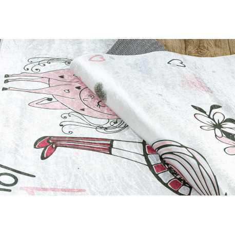 Kab. BAMBINO 2644 mosható szőnyeg Kislány, unikornis gyerekeknek csúszásgátló - fehér / rózsaszín 120x170 cm