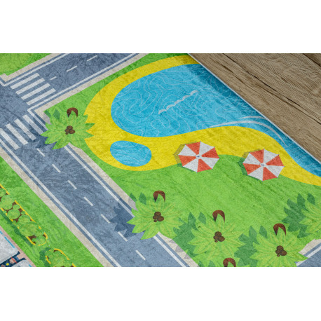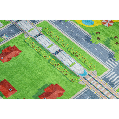 Kab. BAMBINO 2624 mosható szőnyeg Város, utcák gyerekeknek csúszásgátló - zöld / szürke 140x200 cm