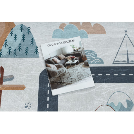 Kab. BAMBINO 46980 mosható szőnyeg Erdő gyerekeknek csúszásgátló - fehér / zöld 140x200 cm
