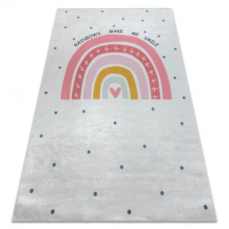 Kab. BAMBINO 47810 mosható szőnyeg Szivárvány, pöttyök gyerekeknek csúszásgátló - fehér / rózsaszín 140x200 cm