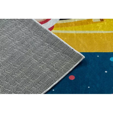 Kab. BAMBINO 42810 mosható szőnyeg Rakéta, bolygók gyerekeknek csúszásgátló - kék / barna  160x220 cm