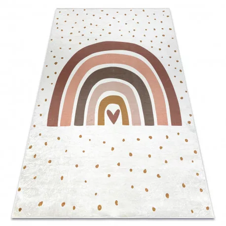 Kab. BAMBINO 46960 mosható szőnyeg Szivárvány, pöttyök gyerekeknek csúszásgátló - fehér / barna 160x220 cm