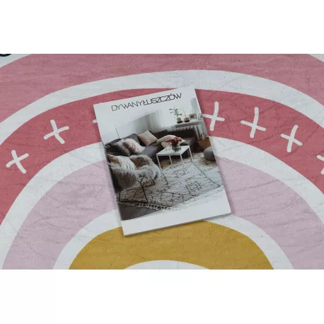 Kab. BAMBINO 47810 mosható szőnyeg Szivárvány, pöttyök gyerekeknek csúszásgátló - fehér / rózsaszín 160x220 cm