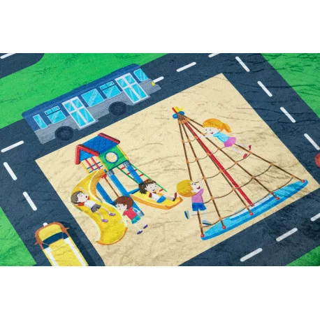 Kab. BAMBINO 2660 mosható szőnyeg Város, utcák gyerekeknek csúszásgátló - zöld / szürke 200x290 cm