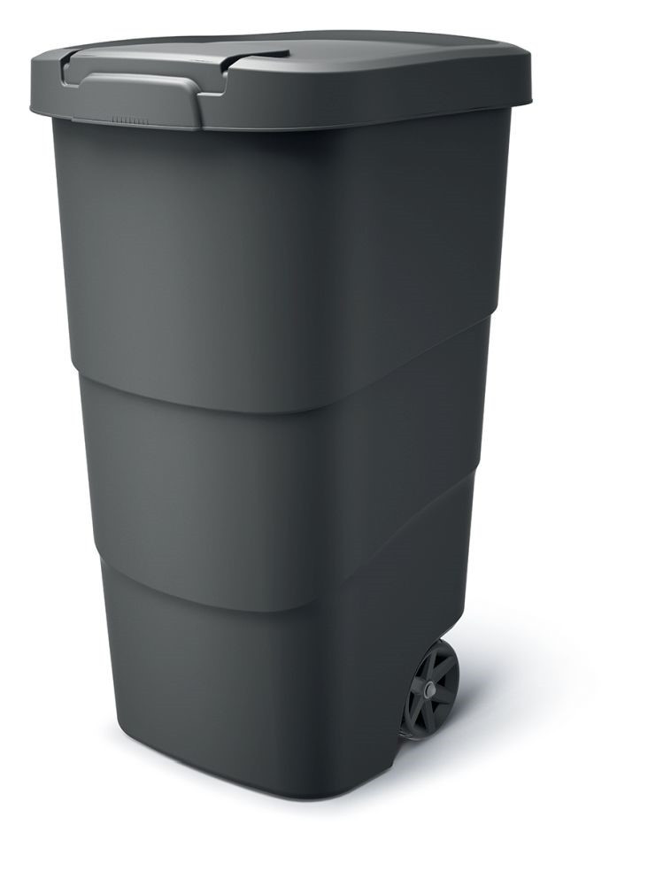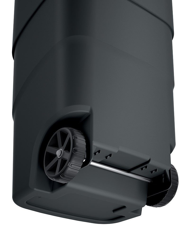 A Prosperplast Wheeler 110 l térfogatú szemetes kuka nagy mennyiségű hulladék befogadására alkalmas. Jól záródó fedéllel van ellátva. Ennek köszönhetően még akkor sem fogja érezni az eldobott tárgyak kellemetlen szagát, ha elsétál a kuka mellett. Ezenkívül a fedélen egy praktikus reteszt talál. Ha kint erős szél fúj, megakadályozza, hogy a szemetes akaratlanul kinyíljon. Így nem kell aggódnia amiatt, hogy a tartalma kiömlik.