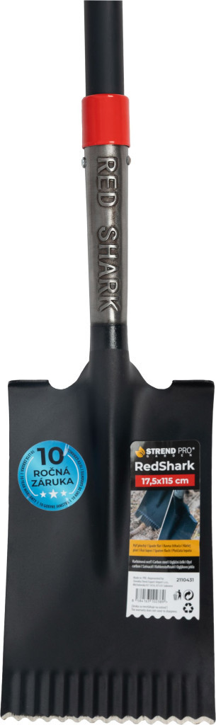 Az Ásó Strend Pro Premium RedShark fogazott élű, egyenes pengéje úgy harap a tömör talajba, mintha vajba szaladna a kés. A kézzel edzett szénacél penge tartós és korrózióálló, így hosszan megőrzi élét. A 115 cm-es üvegszálas nyél könnyű, mégis rendkívül erős, ezért a teljes tömeg mindössze 1,86 kg. Az ergonomikus D-markolat csúszásmentes bevonata biztos fogást ad, a fekete-piros megjelenés pedig lendületet visz a kertbe, miközben a 10 év garancia nyugalmat kínál.