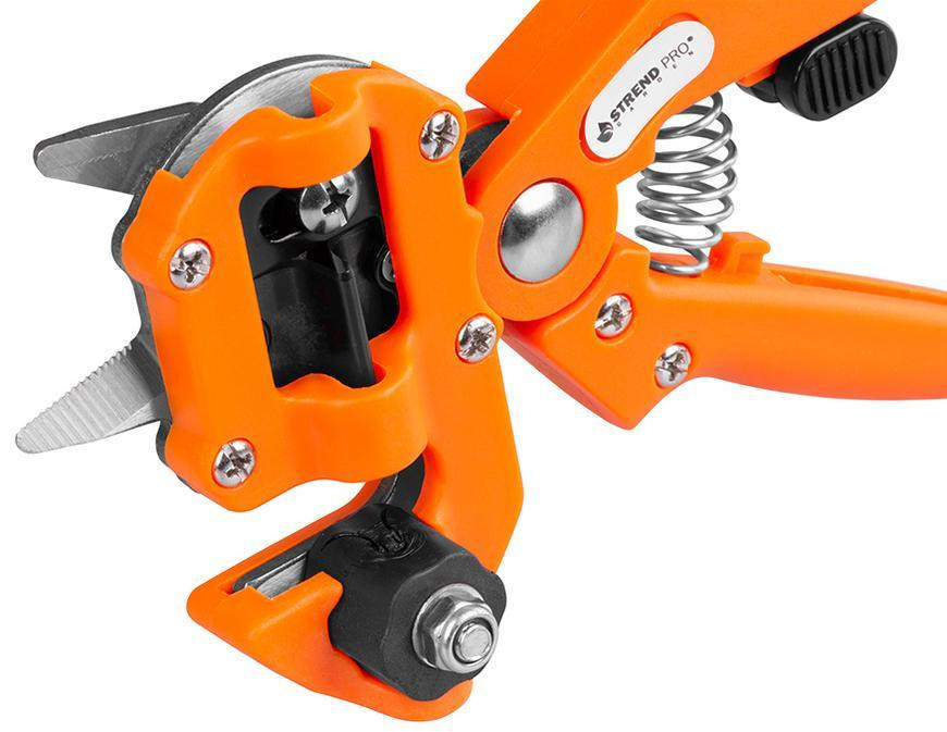 A Strend Pro 2 az 1-ben oltófogóval gyerekjáték a gyümölcsfák és szőlőtőkék oltása. Az Omega vágási profil precíz, „kulcs-zár” illesztésekkel dolgozik, így több mint 80 %-os eredményességet garantál. A mindössze 0,36 kg-os, narancssárga műanyag nyéllel és edzett acél pengékkel szerelt eszköz hosszú műszak alatt sem fárasztja a kezet, miközben stabil, tiszta metszést végez.