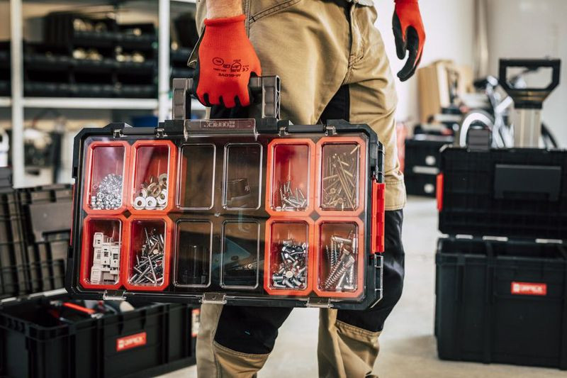 Építsd át műhelyedet egyetlen mozdulattal a Doboz QBRICK® SYSTEM TWO ORGANIZER PLUS segítségével! A strapabíró, ütésálló fekete műanyag test, az átlátszó polikarbonát fedél és a masszív fogantyú gondoskodik róla, hogy a csavarok, tiplik vagy kézi szerszámok mindig biztonságban, mégis szem előtt legyenek. A kilenc kivehető, piros belső tálca precízen rendszerez, míg a poliamid reteszek szállítás közben is tökéletes zárást biztosítanak.