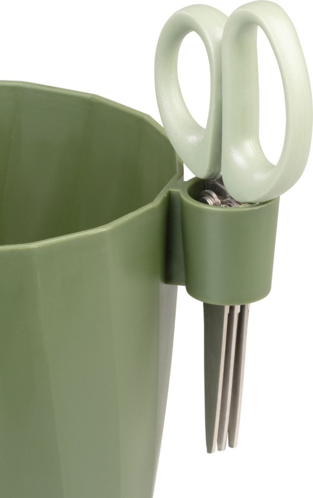• Beépített ollótartó, mellékelt metszőollóval – friss fűszerek pillanatok alatt