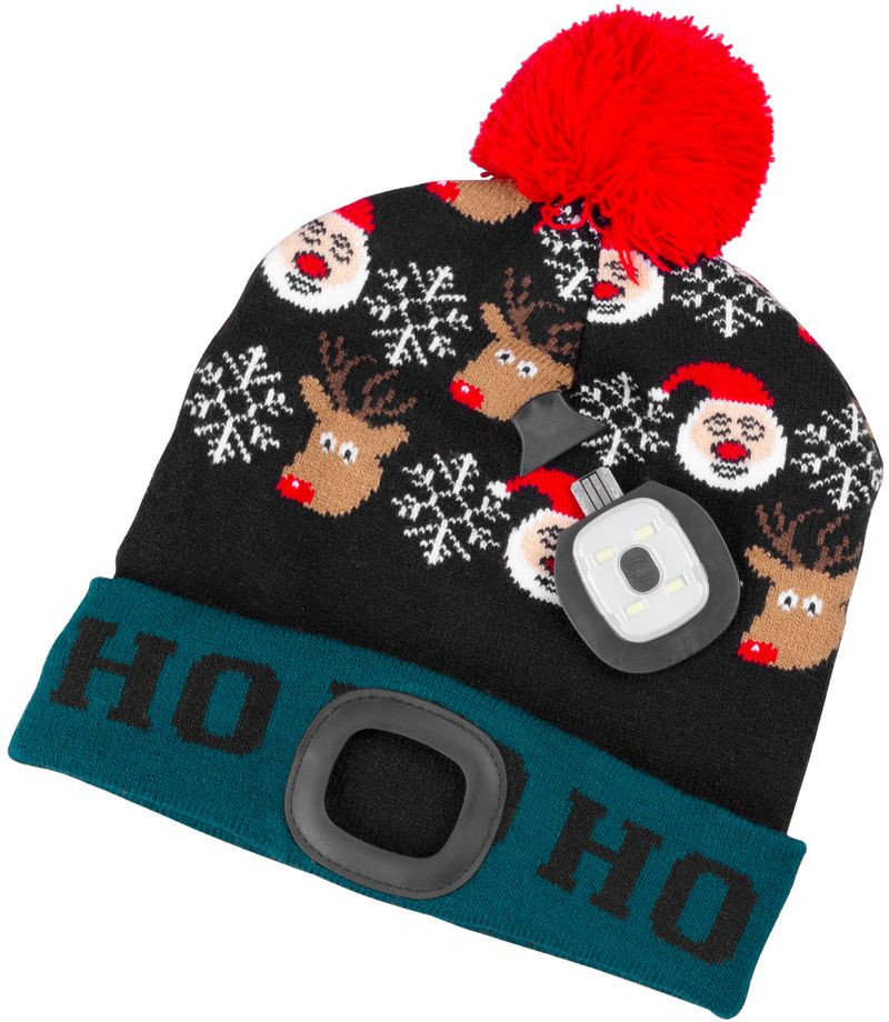 Hangolódj az ünnepekre és maradj látható a téli szürkületben a Strend Pro X-mas Ho-Ho sapkával! A vidám zöld–fekete alapot piros bojt, valamint rénszarvas-, hópehely- és Mikulás-minta teszi igazán egyedivé. A perembe rejtett, kivehető 4 × SMD LED panel 60 lumenes fényt kínál, így a kutyasétáltatás, a karácsonyi vásár vagy a szánkózás is biztonságosabb lesz. A sapka puha, meleg szövete óv a hűvös széltől, a beépített, USB-n tölthető akkumulátor pedig akár két órán át gondoskodik a ragyogásról.
