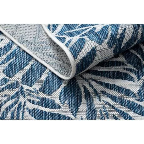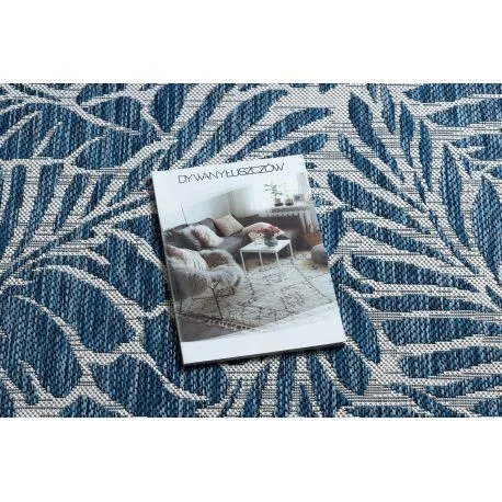 TOP! Kab. Fonott sizal szőnyeg SION Levelek 22151 lapos szövött ecru / sötétkék 200x290 cm